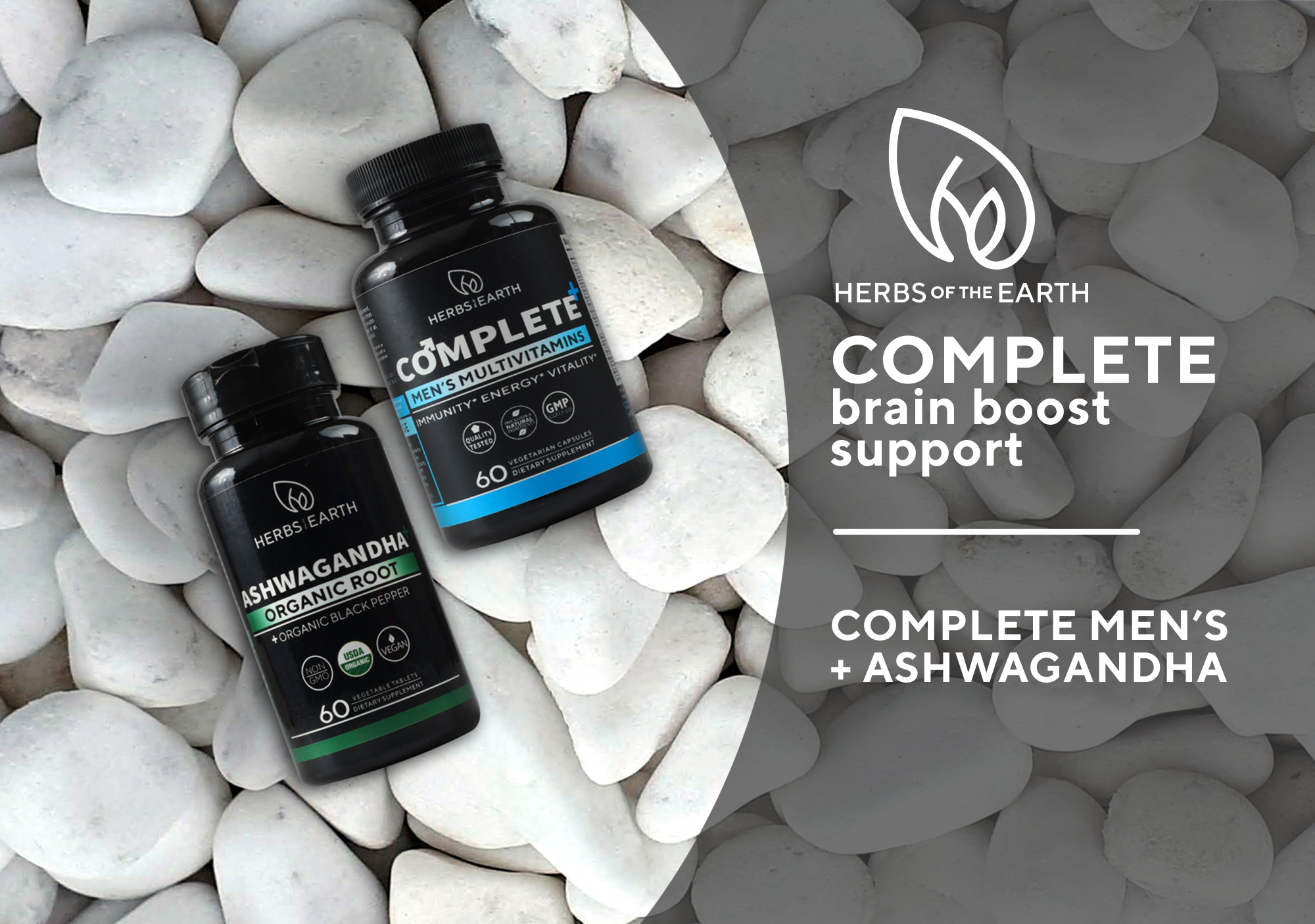 DADTASTIC COMPLETE BRAIN BOOST SUPPORT: Complete Multivitamin for Men - Supports Energy & Overall Male Health 1000mg (60 Capsules) & Organic Ashwagandha 1,350MG 60 Capsules from Herbs of the Earth